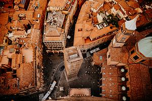 A birds-eye view of Bologna from the Asinelli tower.